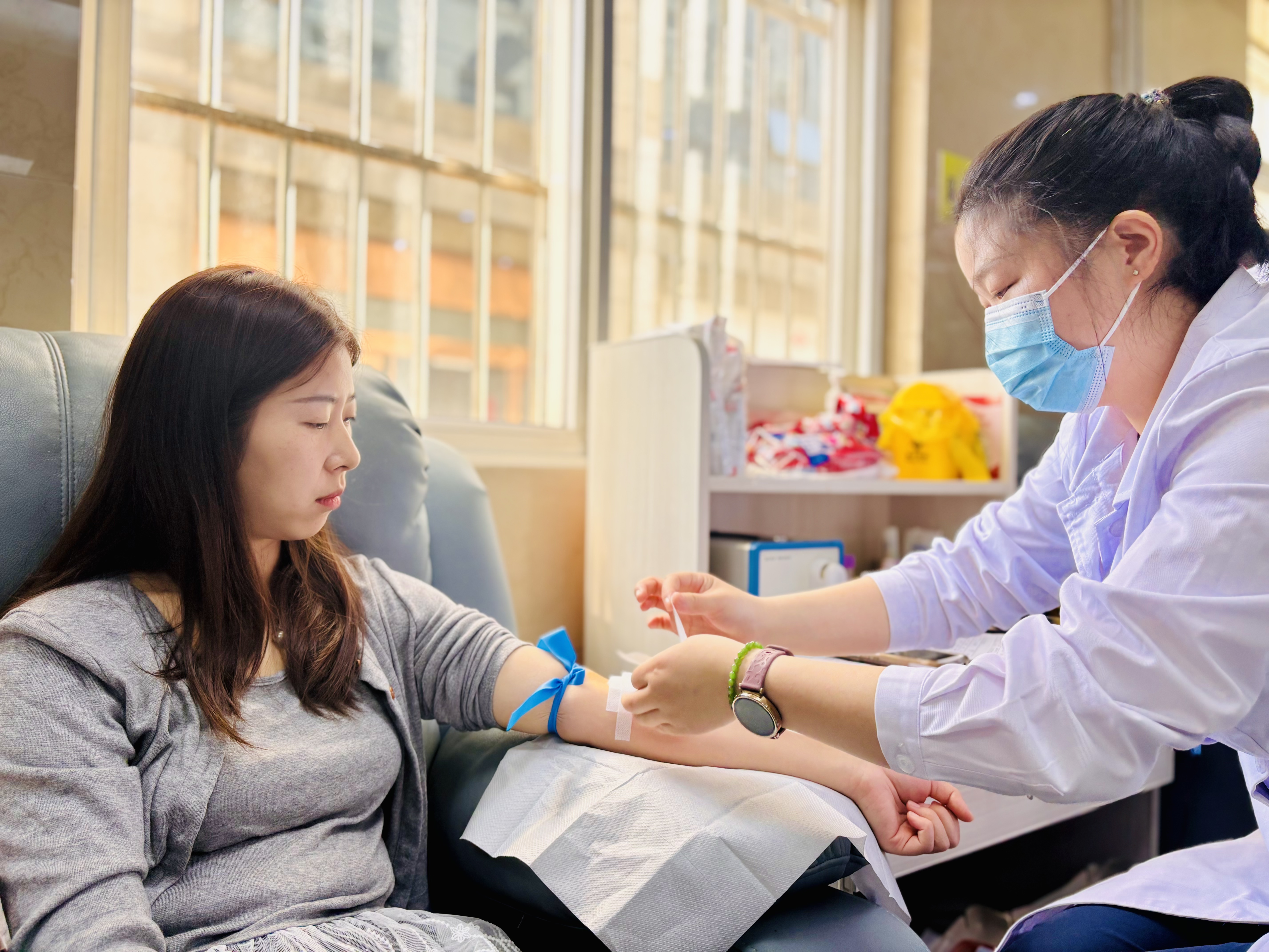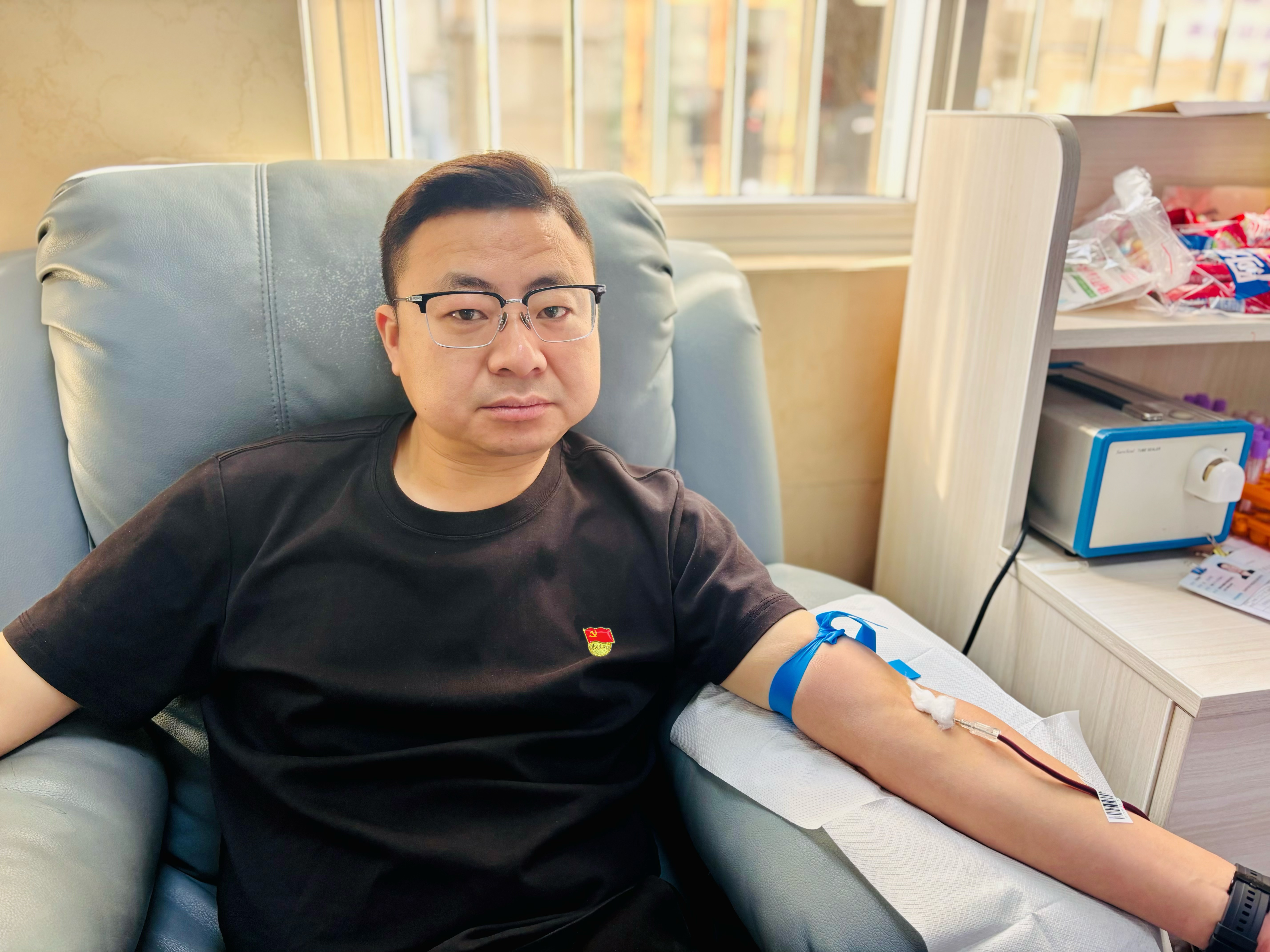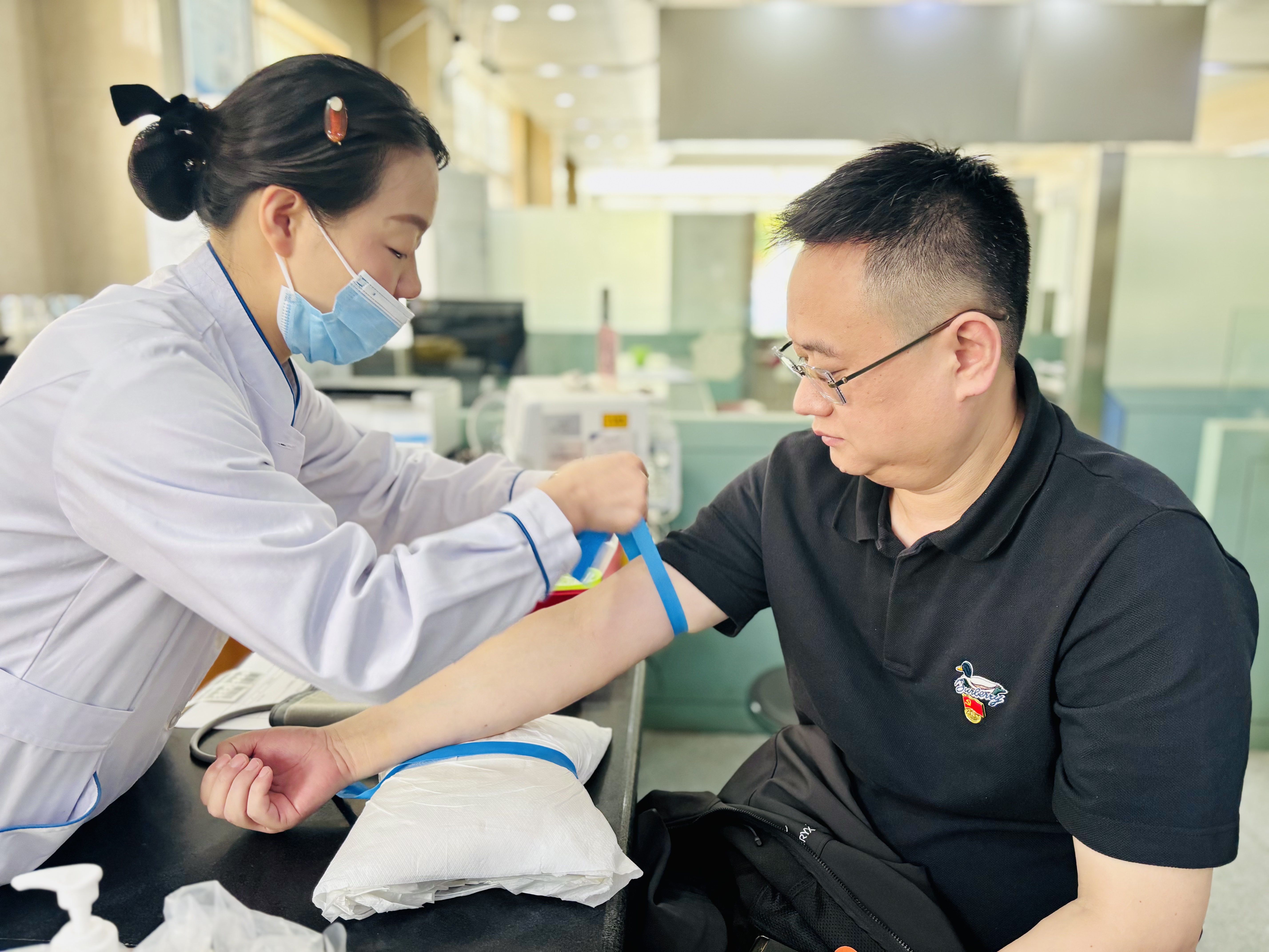活動(dòng)中,在市中心血站工作人員的引導(dǎo)下,大家有序完成了信息登記、健康征詢、血壓測(cè)量、初篩檢測(cè)等工作。隨后,黨員志愿者們積極帶頭,紛紛挽起衣袖、伸出手臂,2300CC的熱血與熠熠生輝的黨徽在這一刻共同譜寫出了生命的贊歌。